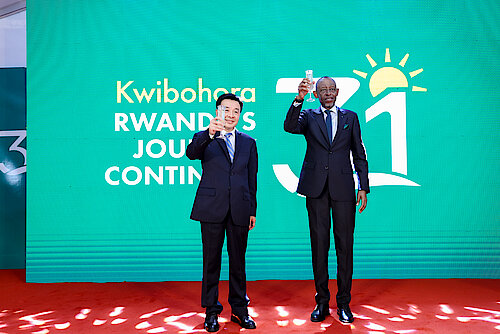 最后,我要向卢旺达的侨胞、卢旺达的朋友们以及尊敬的访问者传递一个信息,那就是大使会携全体使馆的工作人员竭诚为您服务。我们很高兴收到您的来信,并随时为您服务。我们与您鼎力同行。
