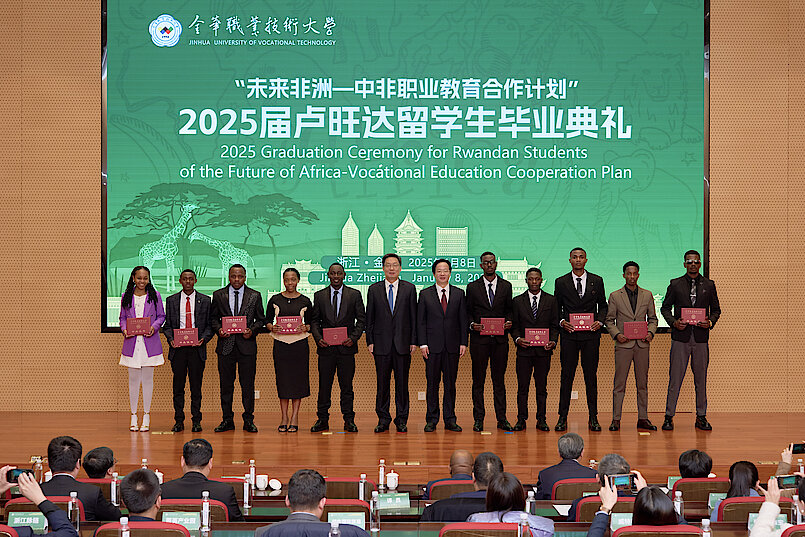2025年1月8日,卢旺达驻华大使馆参加了30名卢旺达学生在金华职业技术大学的毕业典礼,他们完成了由卢旺达理工学院穆桑泽学院和中国金华职业技术大学联合举办的电子商务和电气自动化专业的职业教育交流项目。